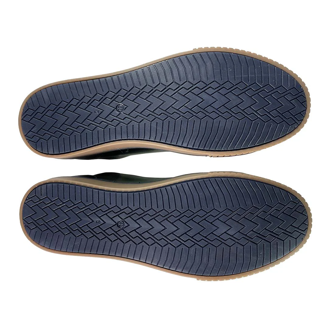 High-top leather trainers men's green casual shoes. The Beckton is a plain front sneaker in a casual green leather with a non-uniform finish. The soft leather lining, padded collar and the natural rubber sole with a navy blue base and trim (with green stitching on the sides to match the leather), provide all of the comfort expected from a trainer. Ideal for all-day wear, these shoes will look great with jeans or chinos.