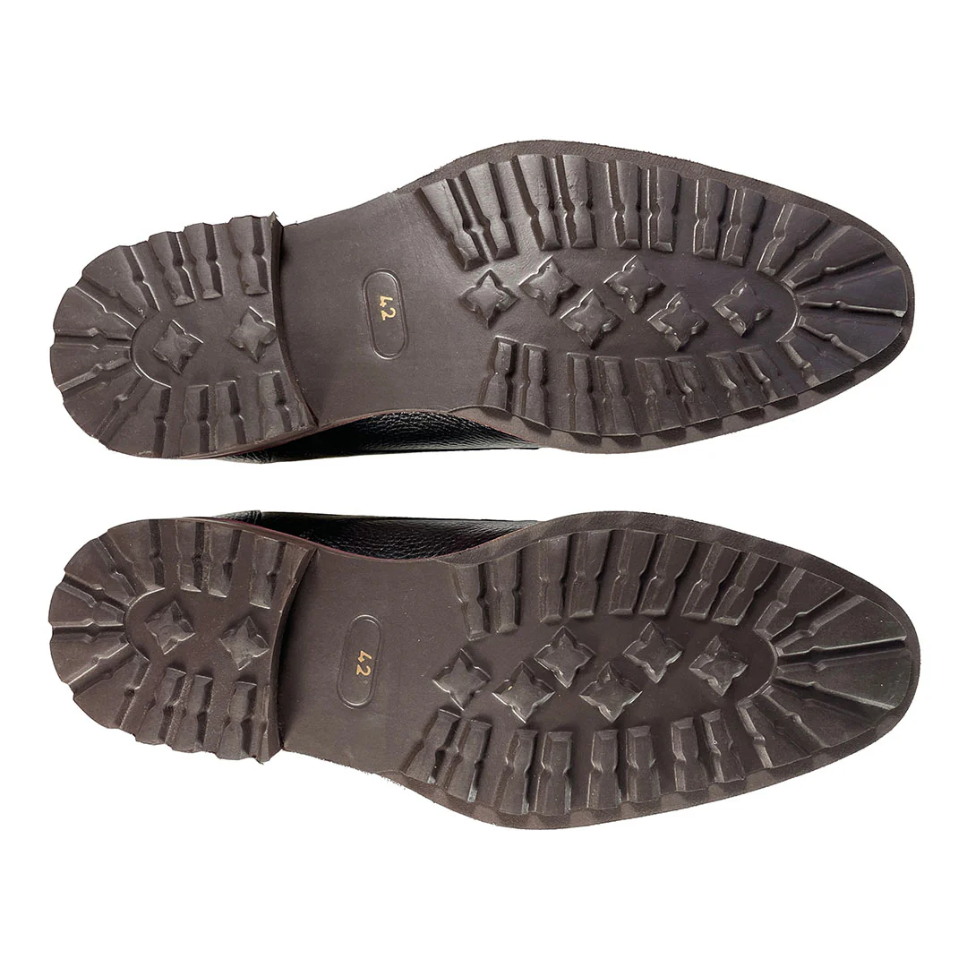 Men's brown leather shoes. The Burnham is a lace up Derby style shoe, made in a unique brown-tan two-tone grain leather. The leather starts as dark brown and is then brushed down to reveal the lighter tan shade inside.