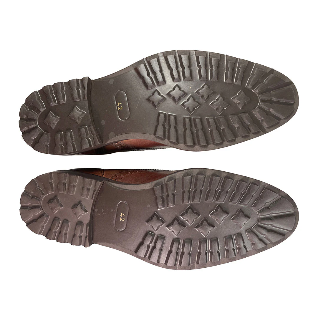 Tan brogues men's leather shoes. The HaydonĀ is aĀ classic Oxford design with capped toe and brogue detailing,Ā thatĀ has been hand finished and stained to a contrasting burnish against the rich tan leather. The shoes have a nicely sculpted upper, soft leather lining and a lightweight cleated sole that is durable and comfortable.Ā Smart and versatileĀ enough to wear to work, or for smart casual occasions.